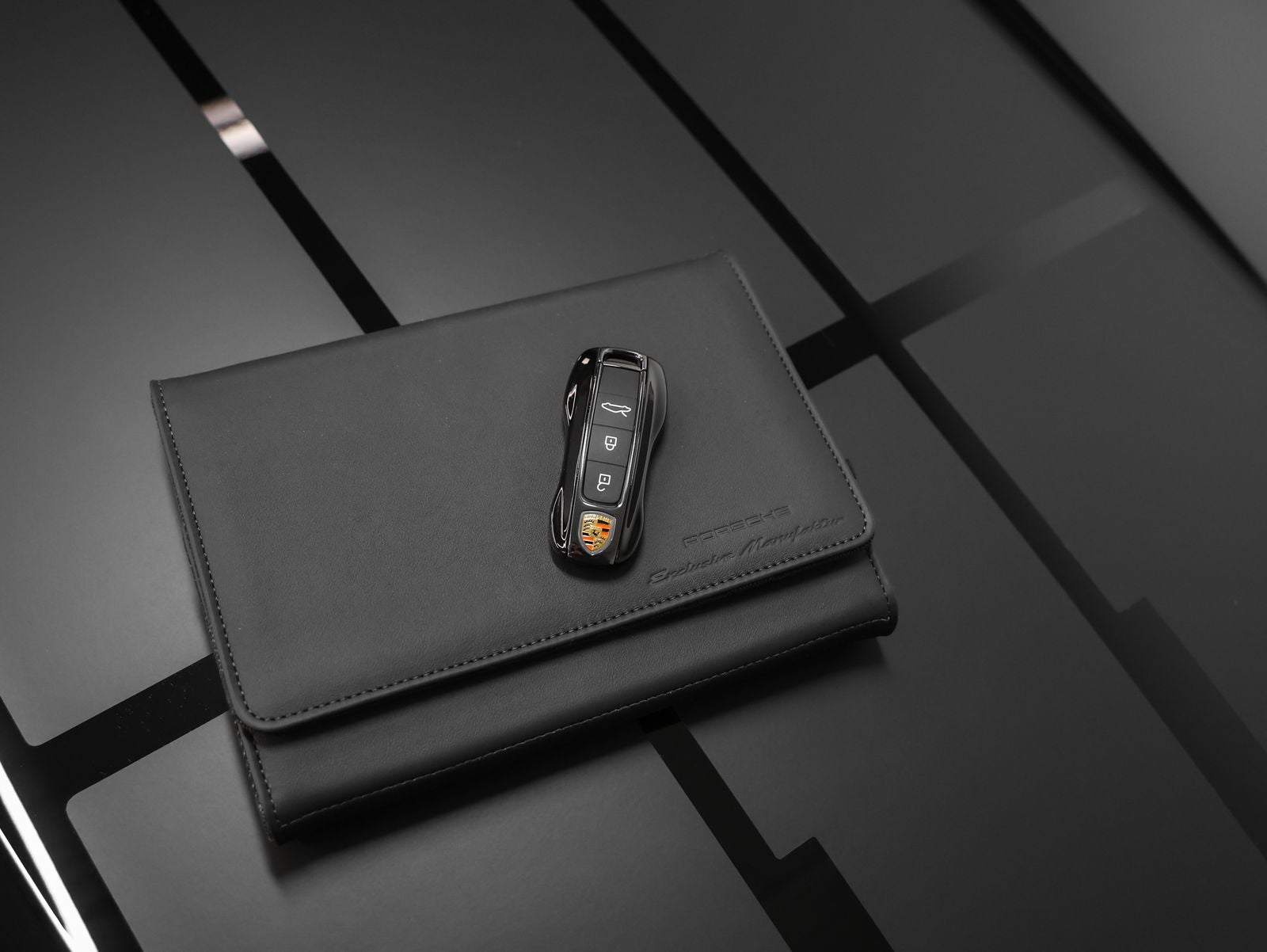 PORSCHE Logo and Front Trunk Lid Stripes in Satin Black