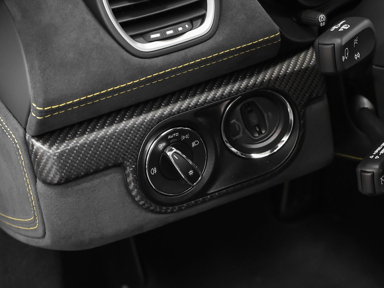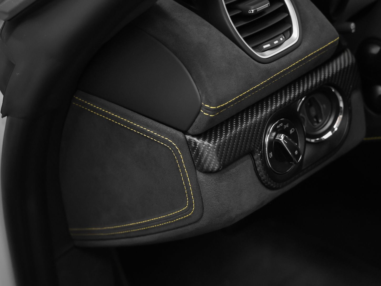 Dashboard End Trims in Leather/Race-Tex - Racing Yellow